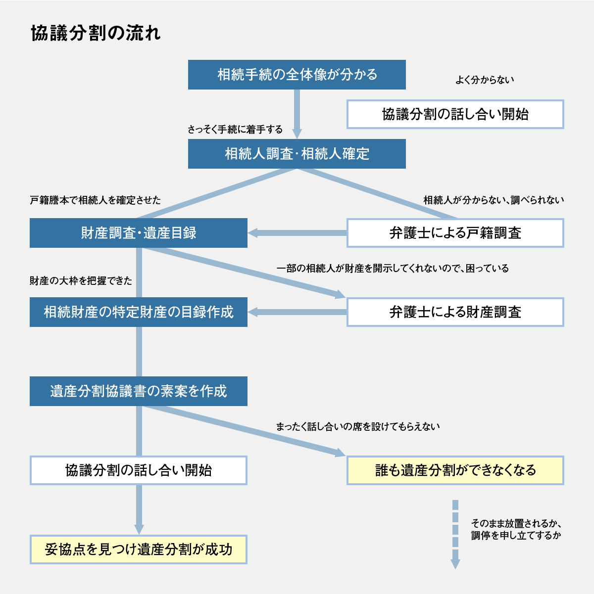 相続人全員で協議分割の流れを確認することで、遺産分割の全体像を把握することができます。